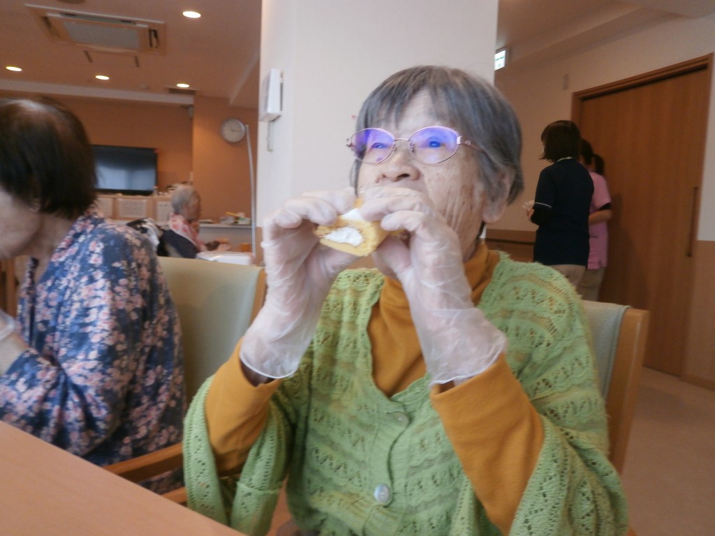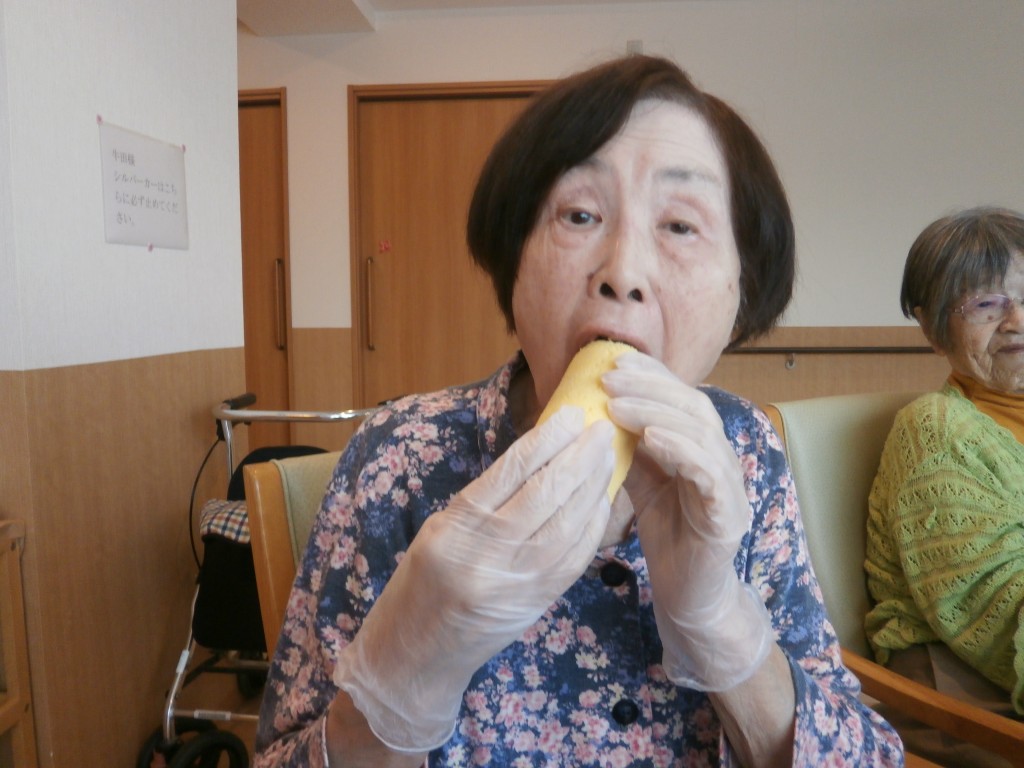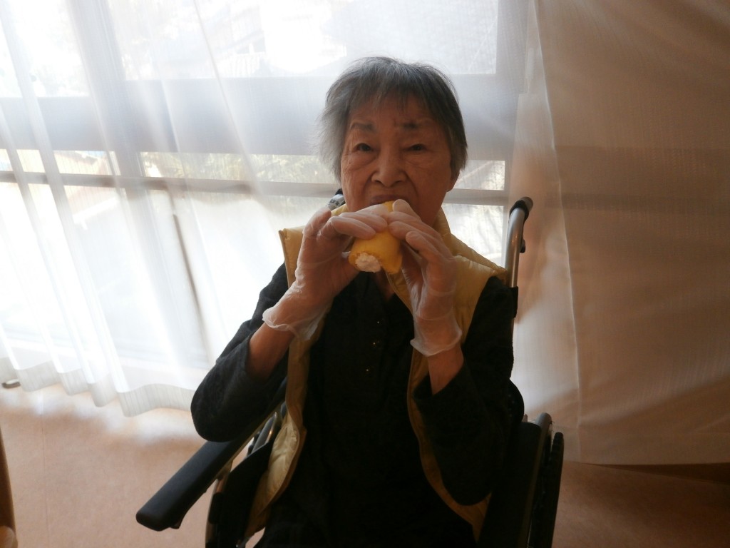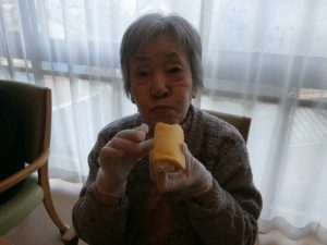 恵方巻に見立てたロールケーキを召し上がっていただきました。