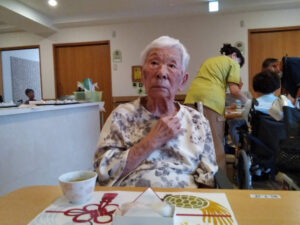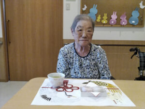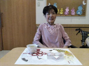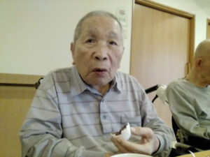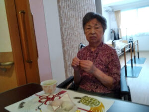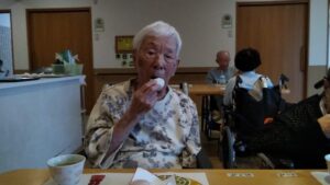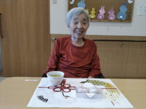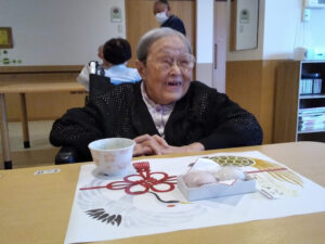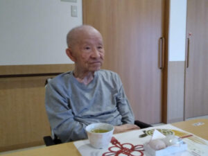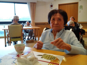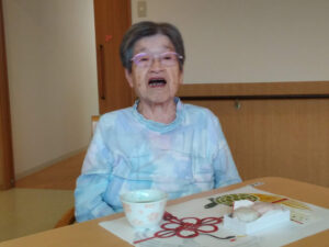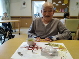 敬老の日ということで、入居者の皆様に、紅白饅頭をおやつに食べていただきました。