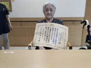 100歳のご長寿です。岸田総理からお祝いの賞状を頂きました。