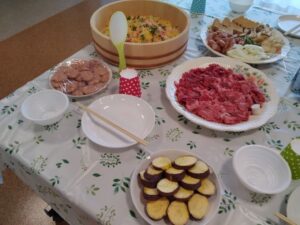 今年は焼肉とちらし寿司を召し上がっていただいています。